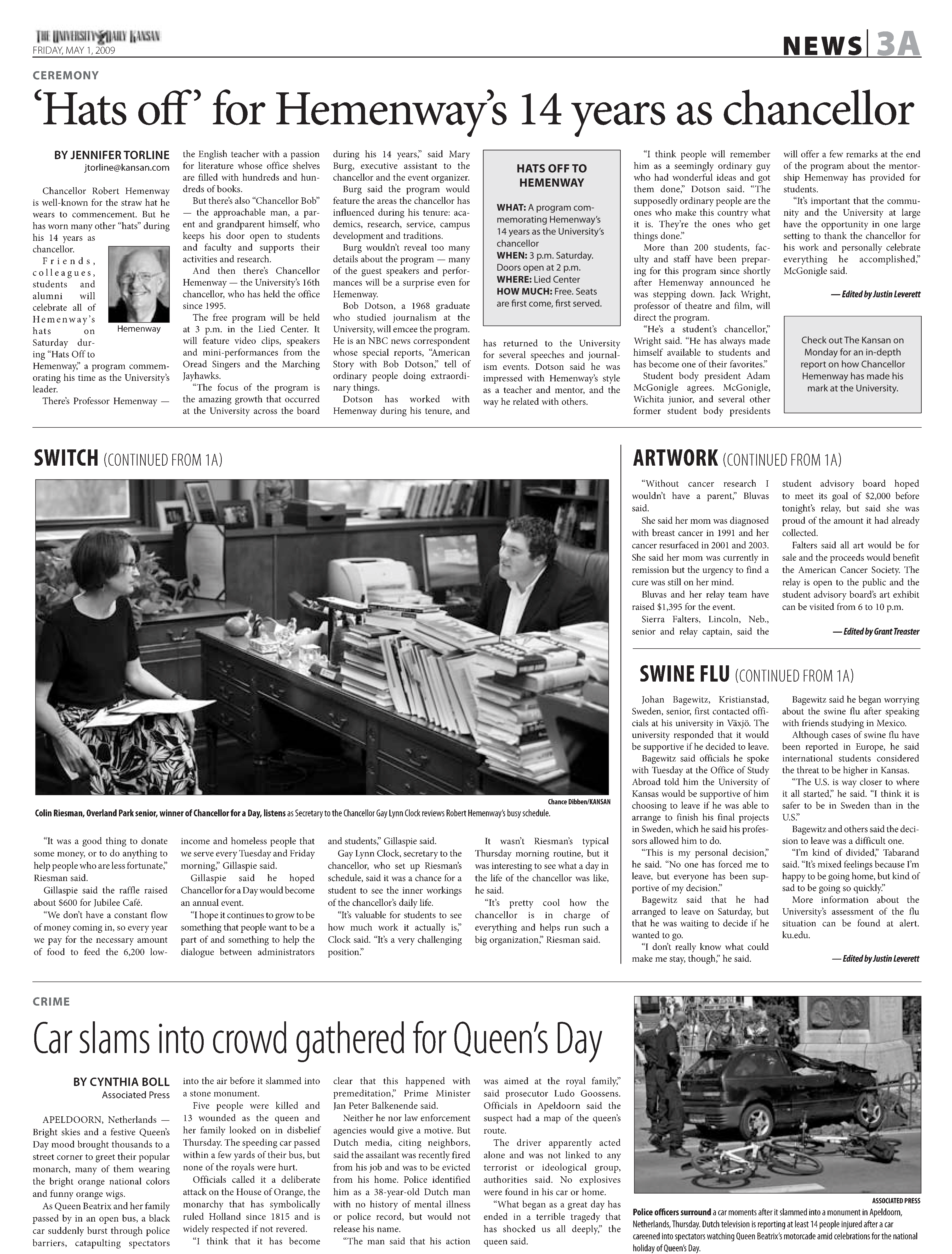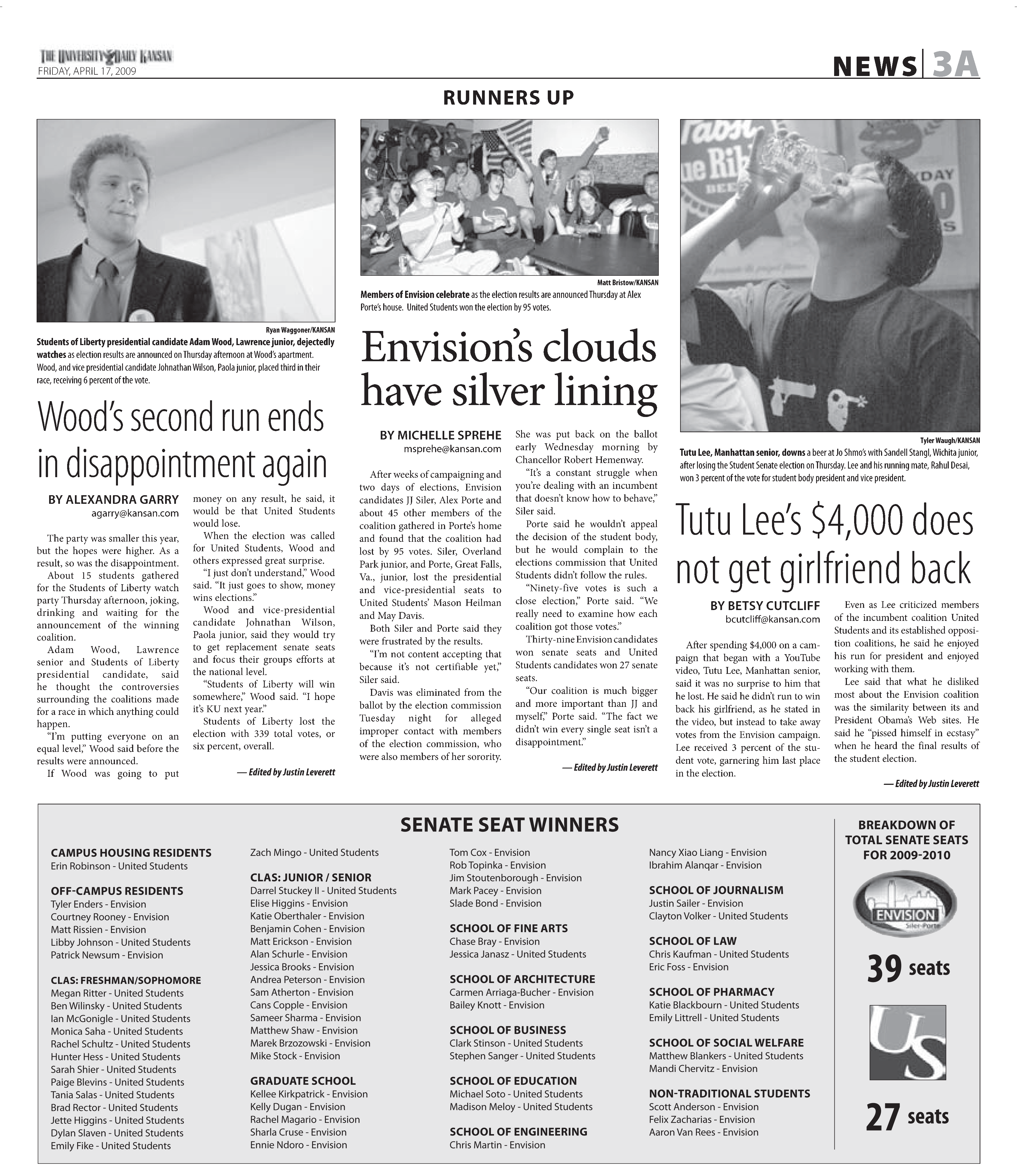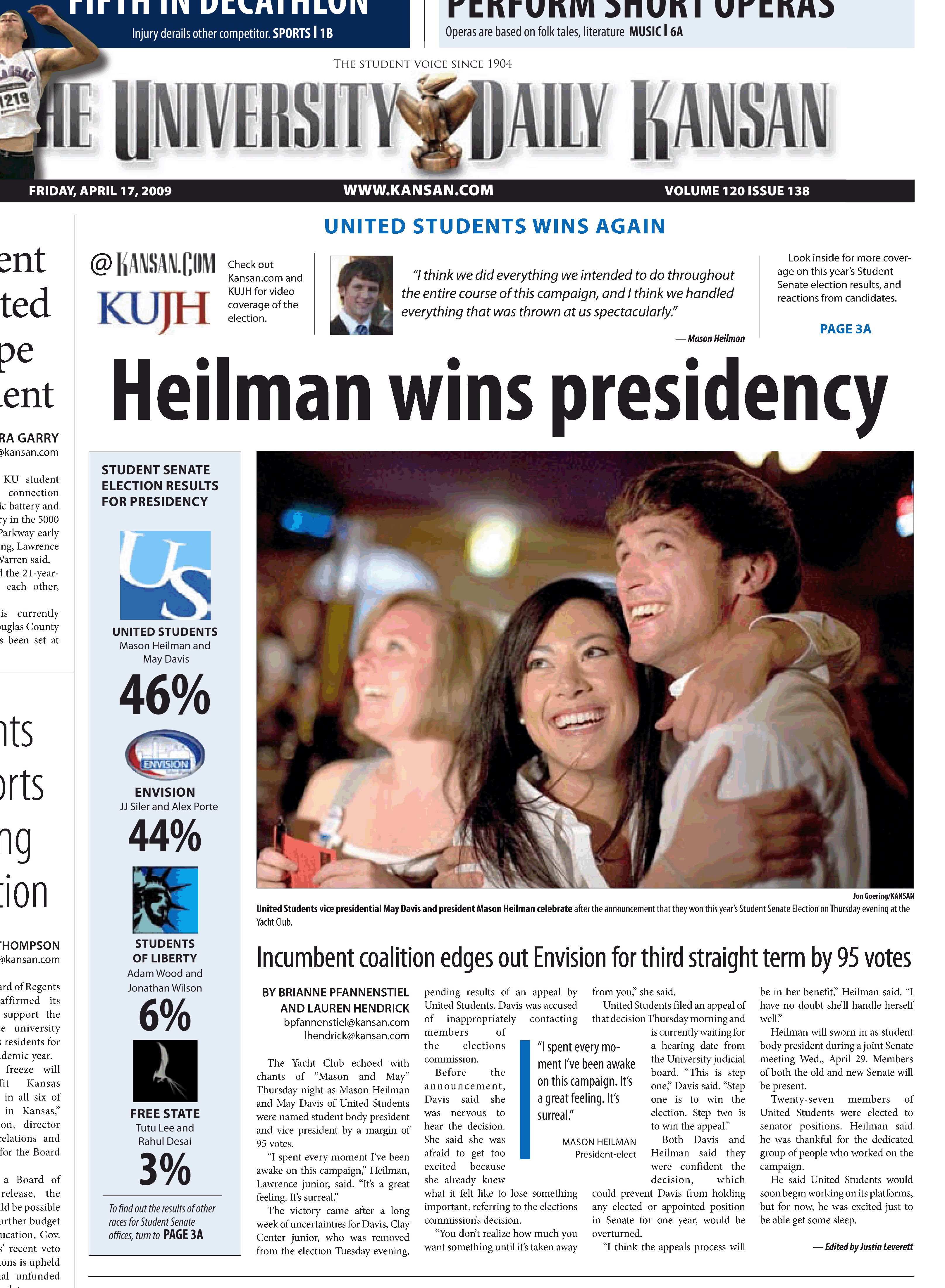 I edited each of the four stories following the Student Senate elections in Spring, 2009. Open the PDFs, below, in Adobe Reader.